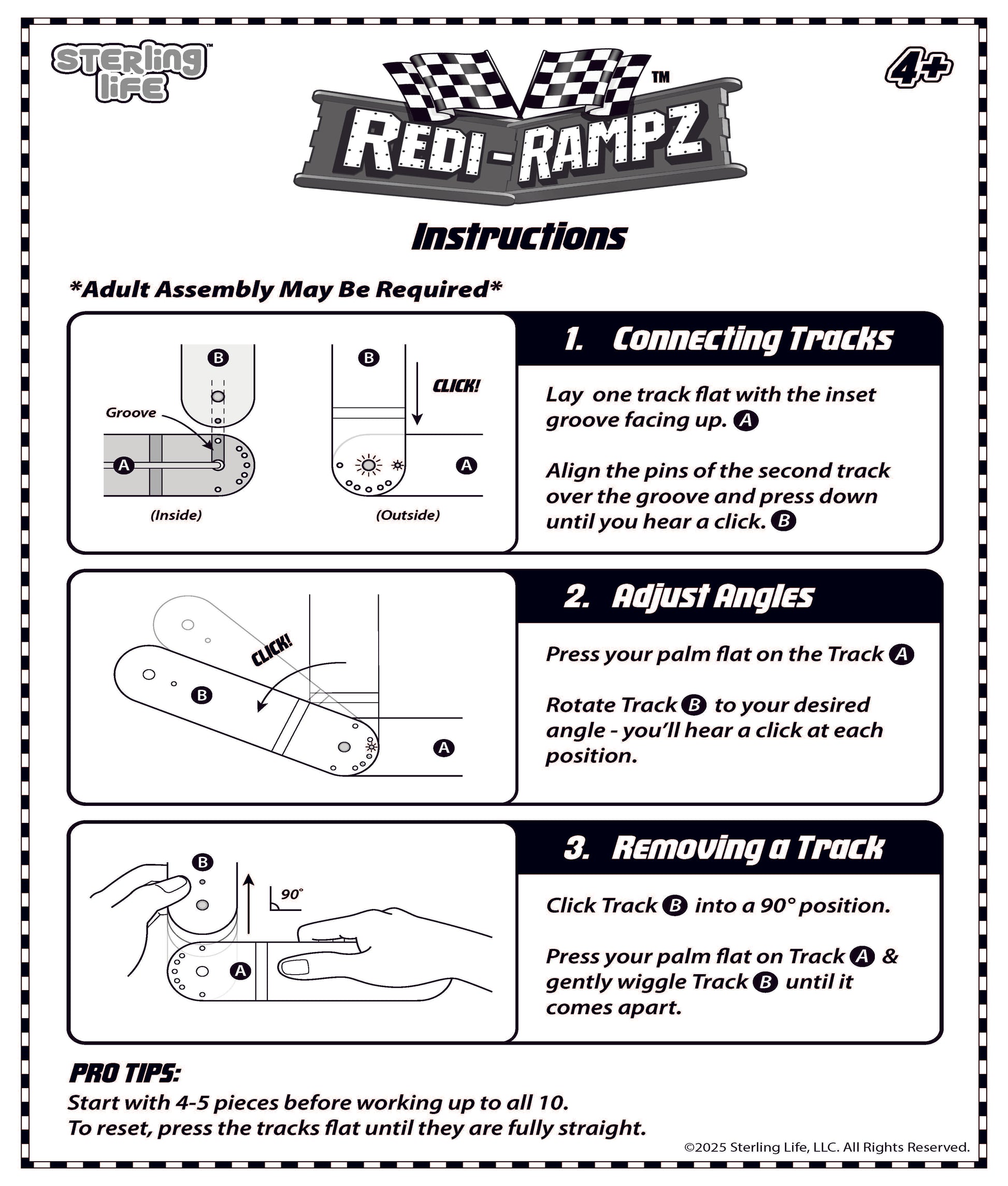 - Two-sided track & dual ramp builds: Flip between off-road and street textures and split the system into two ramps for multi-player fun or creative challenges.